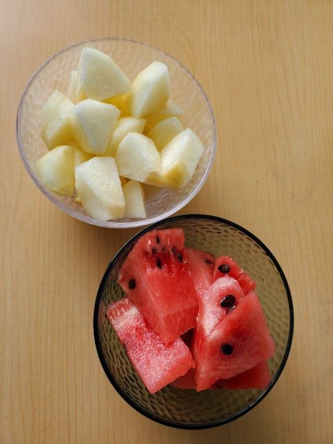 金曜日の茶話会は、ご利用者様からいただいた梨とスイカををおいしくいただきました。