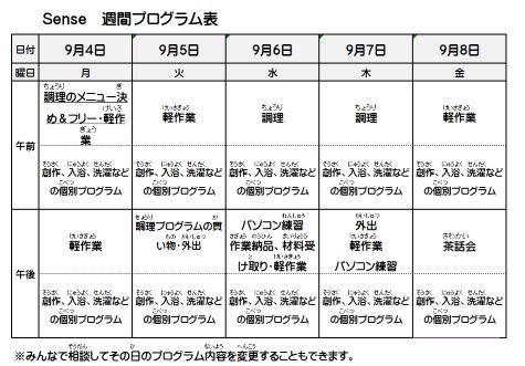 - 2024年9月のプログラム表です。