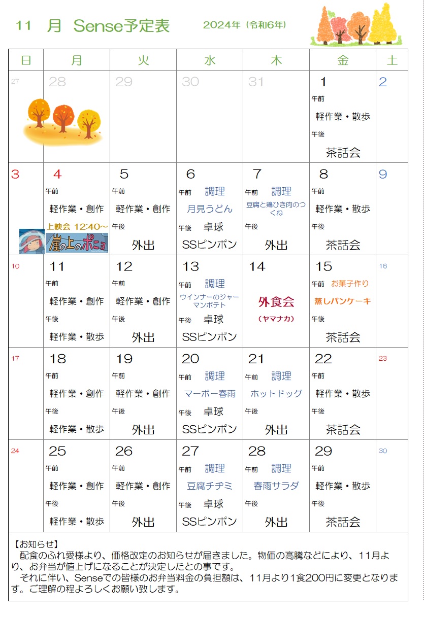11月のプログラム表が完成しましたの掲載します。