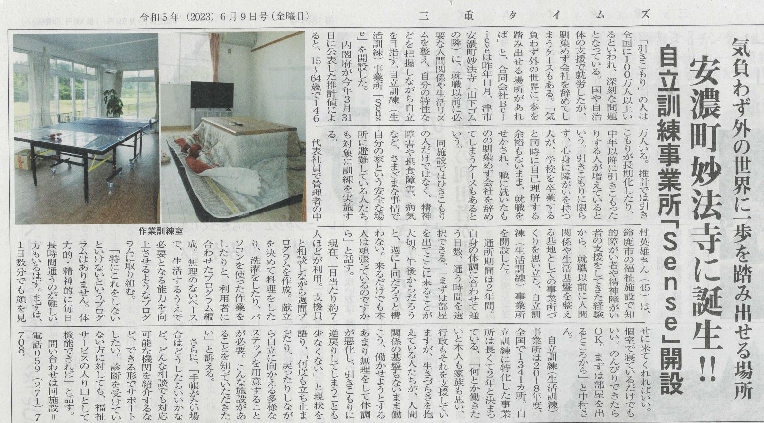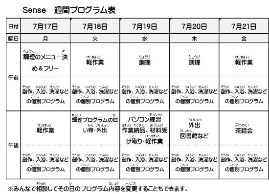 2024年12月1日からSenseは自立訓練(生活訓練)と就労継続支援B型の2種類のサービスを提供する多機能型の事業所になりました。
