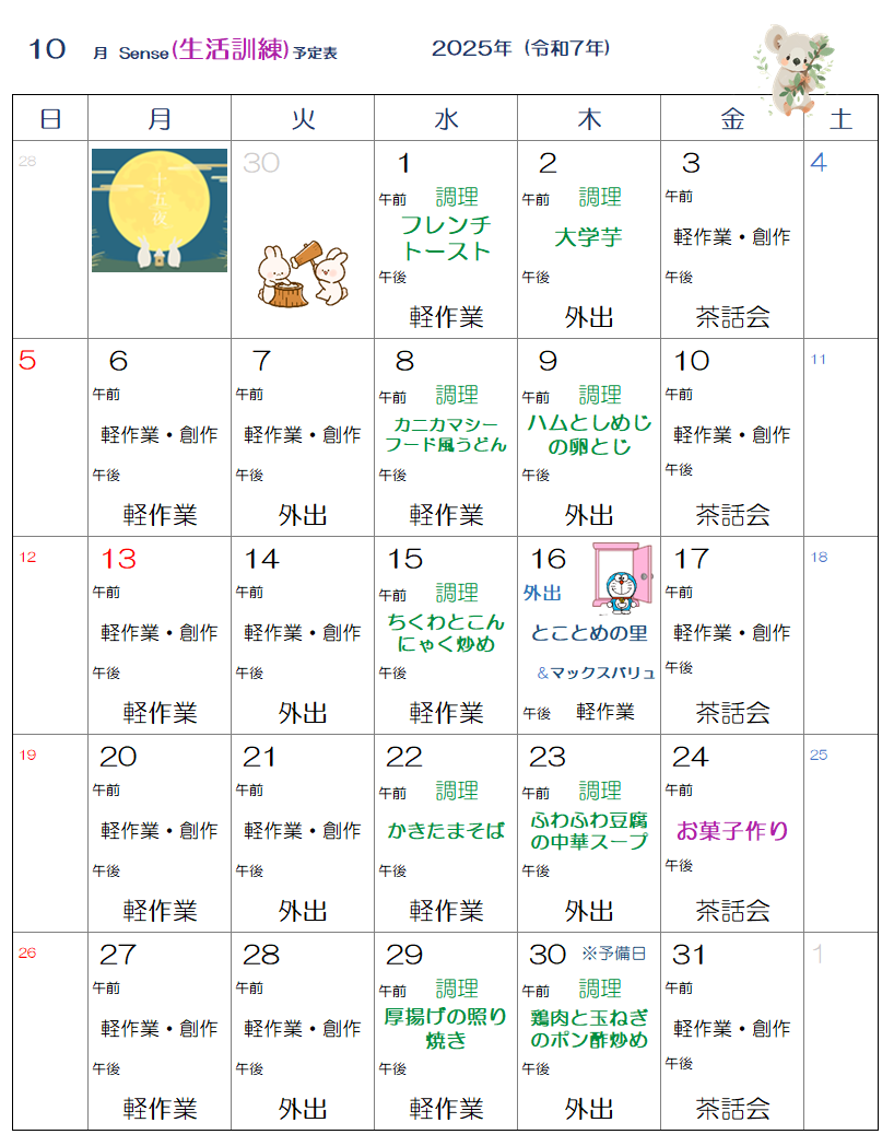 自立訓練(生活訓練)、就労継続支援どちらのサービスも充実した内容に出来るよう取り組んでいきたいと思っております。
