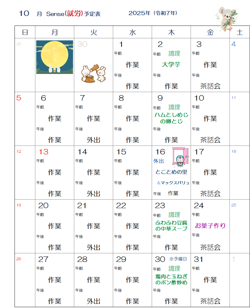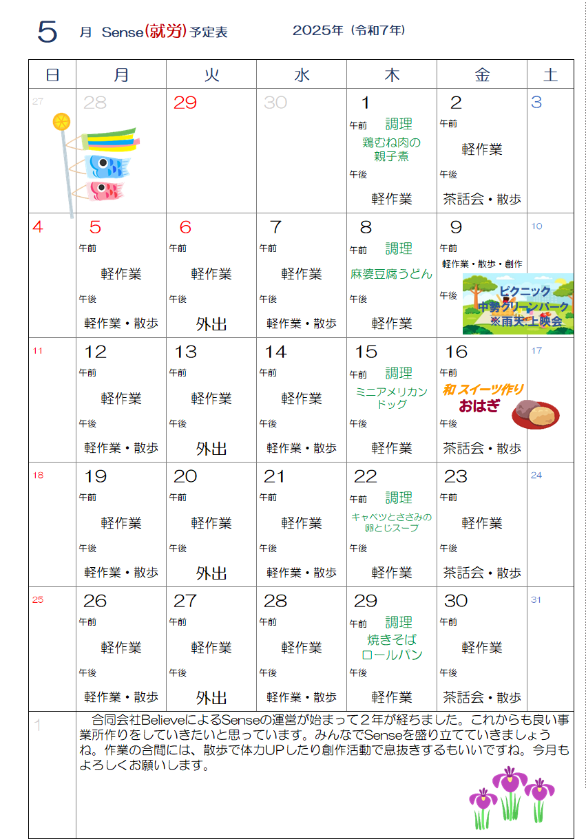 令和6年度に入ってからは月間のスケジュール表を作成し、皆さまに1ヶ月間の活動内容をわかりやすくなるようにしています。