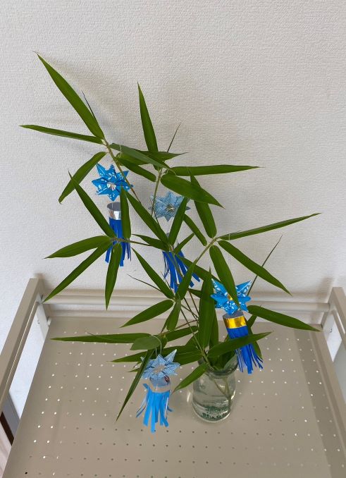 本日は七夕ですね。ご利用者様が、スタッフ4人分の「吹き流し」を折ってくださいました。皆さま、今週もお疲れ様でした。ありがとうございました。よい週末を!